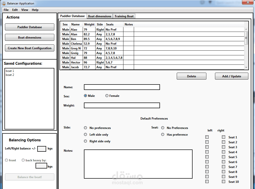Design and implement a WPF application to balance a Dragon boat contains 22 paddlers using Genetic algorithm based on paddler features such as weight, height and preferred hand.