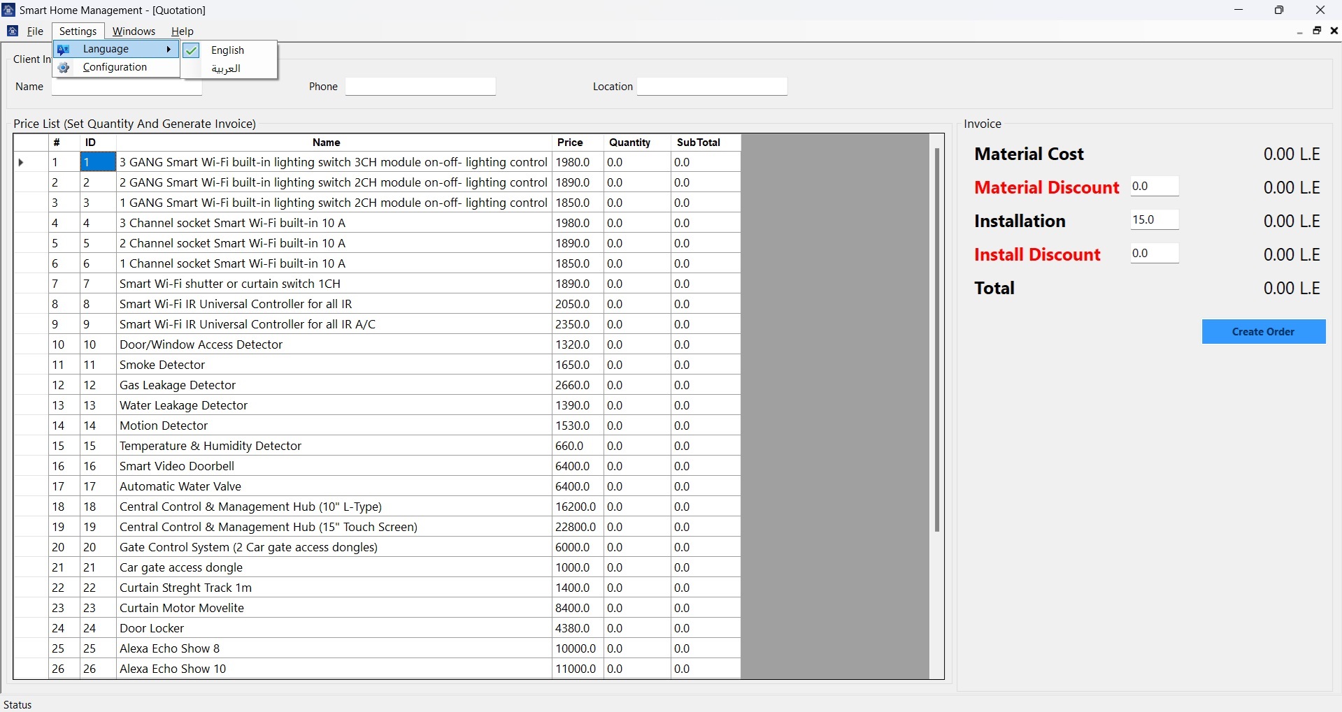 This project is used to manage orders and price list of smart home systems for iSoftSystems