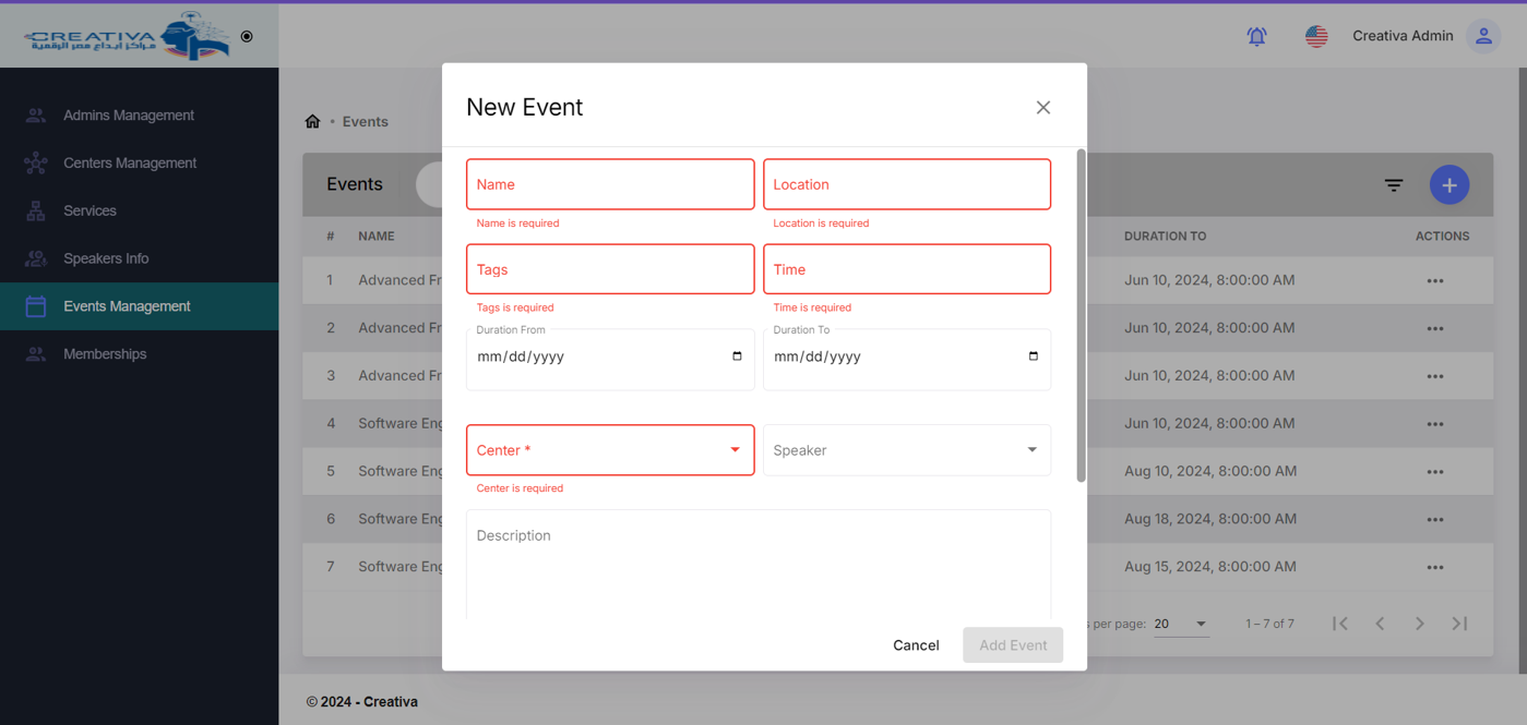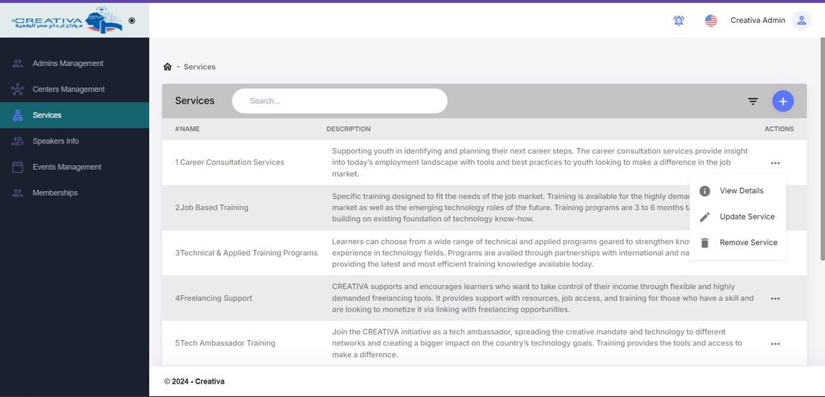 This project is administration dashboard for creativa, which allow admins to: